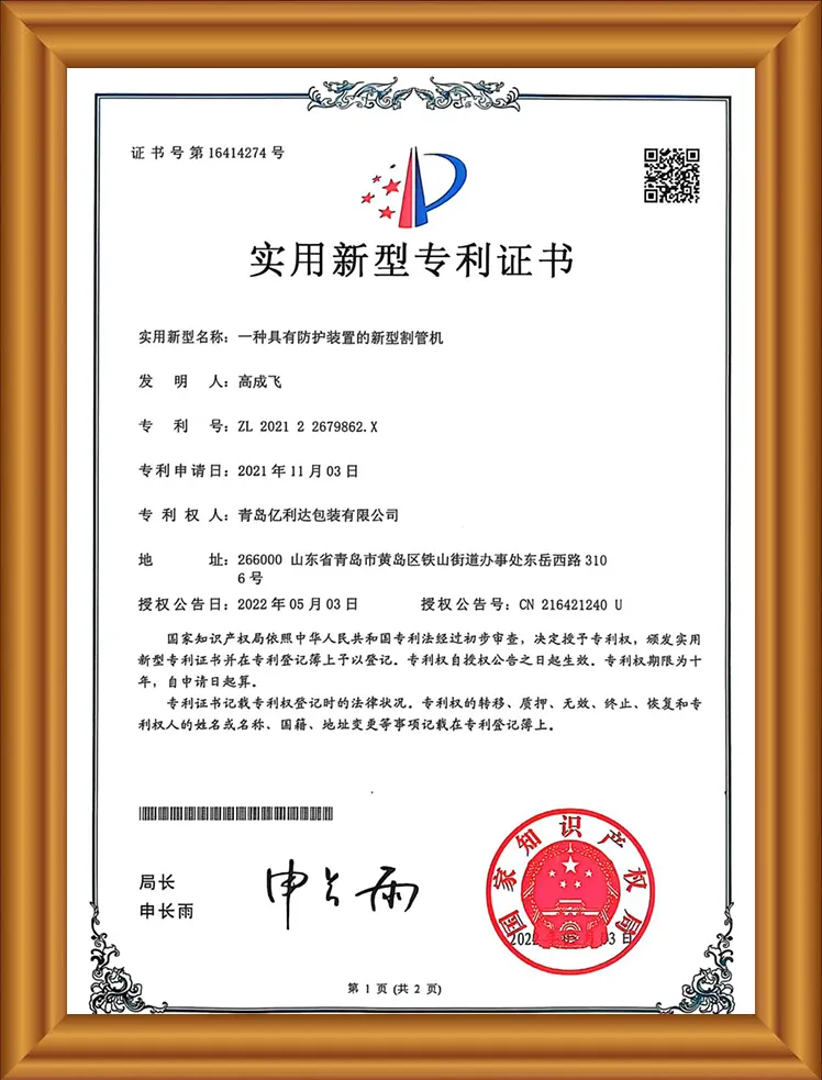 हाम्रा उत्पादनहरू FSC प्रमाणित, ISO9001 प्रमाणित, सुविधाजनक U-shaped कागज ट्यूब मेसिन, एक विशेष र नवीन साना र मध्यम आकारको उद्यम प्रमाणपत्र, Puni परीक्षण, र एक गुणस्तर आपूर्तिकर्ता प्रमाणपत्र सहित सात प्याटेन्टहरू छन्।